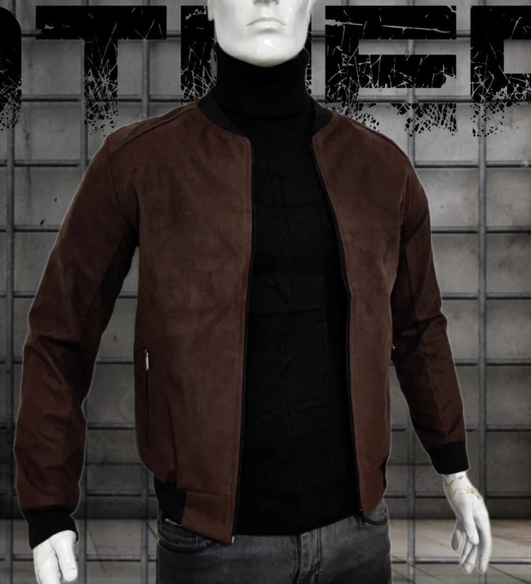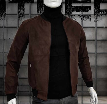 CHAQUETA BOMBER CAFE OSCURO CON PUÑO Y CINTURA NEGRO