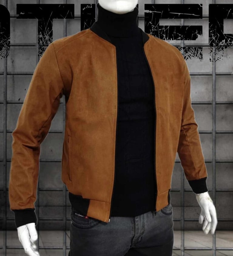 CHAQUETA BOMBER TABACO CLARO CON PUÑO Y CINTURA NEGRO