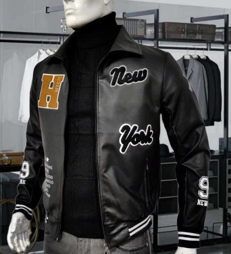CHAQUETA BOMBER EN CUERO SOLO TONO NEGRA
